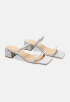 Silver Glitter Mules Maiate – Women’s 4 cm Low Block Heel Slip-On Sandals